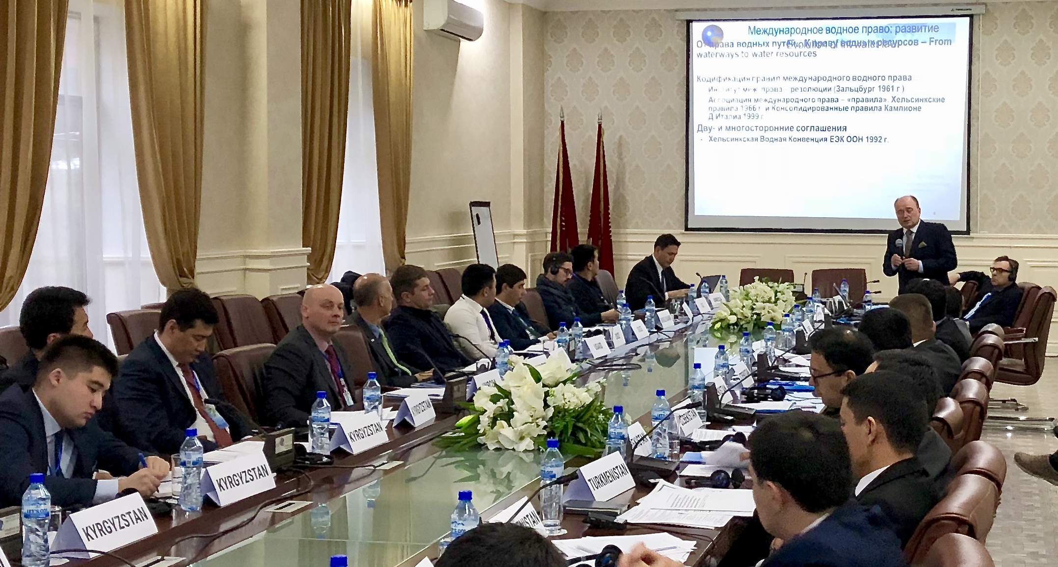 18 апреля 2018 г. в Бишкек состоялся обучающий семинар по теме «Обеспечение справедливого использования и эффективного управления трансграничными водотоками в Центральной Азии и государственно-частное партнерство (ГЧП) для развития инфраструктуры». Мероприятие было организовано Региональным Центром ООН в рамках специального курса семинаров по проблематике управления трансграничными водотоками в Центральной Азии посредством международной водной дипломатии, права и институтов.