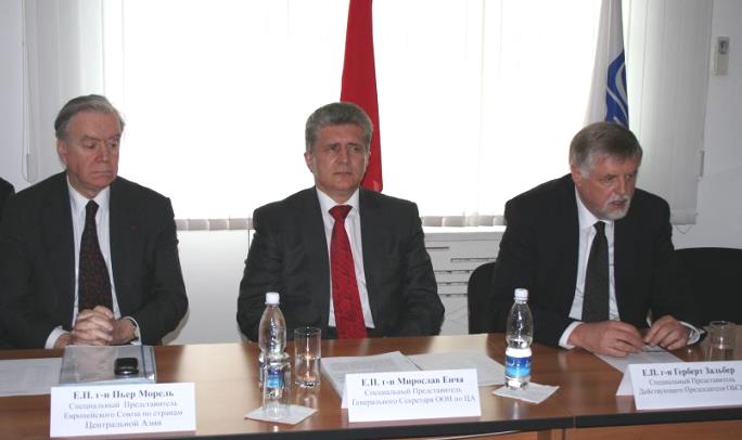 On 14 April 2011, the Special Representative of the UN Secretary General Miroslav Jenča, Special Representative of the OSCE Chairperson-in-Office for Kyrgyzstan Herbert Salber and EU Special Representative for Central Asia Pierre Morel visited Bishkek.
