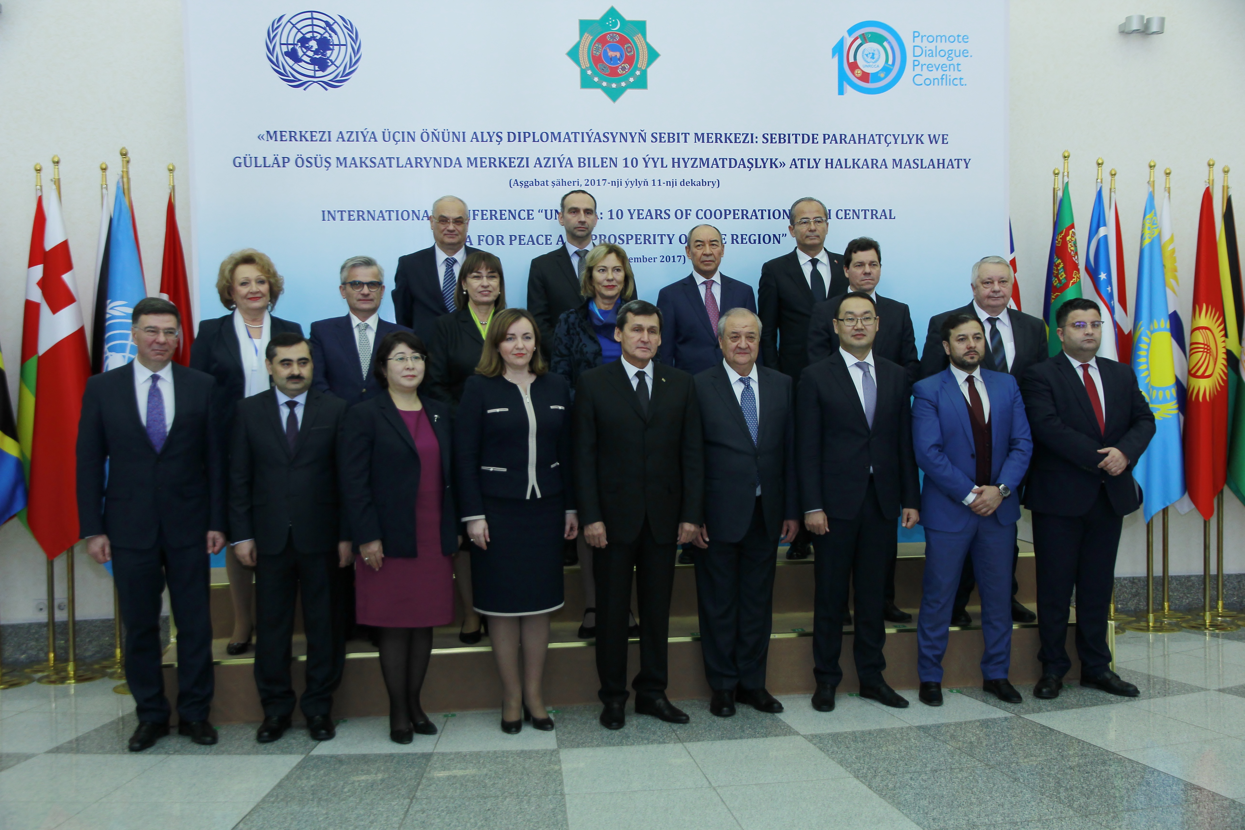 Ashgabat, December 11, 2017: On 11 December 2017, the UN Regional Centre for Preventive Diplomacy for Central Asia (UNRCCA) conducted a Meeting of Central Asian Foreign Ministers, on the occasion of the Centre’s 10th anniversary and the International Neutrality Day. This meeting, which brought together Ministers and Deputy Ministers from the Republic of Kazakhstan, the Kyrgyz Republic, the Republic of Tajikistan, Turkmenistan, the Republic of Uzbekistan, as well as the Islamic Republic of Afghanistan provided an opportunity to exchange views on peace and security developments in the region, and agree on ways to enhance regional cooperation, with the support of UNRCCA.