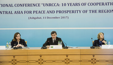 Following this event, all participants were invited to attend the international conference titled: “UNRCCA: 10 years of cooperation with Central Asia for peace and prosperity in the region”, hosted by the Ministry of Foreign Affairs of Turkmenistan and jointly organized with UNRCCA. Discussions during this event focused on the Centre’s activities over the past decade and its contribution to peace and security in Central Asia. Participants also underlined the Centre’s crucial role in fostering cooperation between Central Asian states, recommitted to the principles of preventive diplomacy and called upon the Centre to continue its efforts in facilitating dialogue in the region.